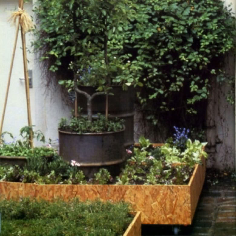 J’ai inventé le " Jardin à roulettes " à la suite d’une rencontre avec Michèle Gleizer. La comédienne, qui est aussi brodeuse, recherchait un paysagiste car elle avait besoin d’un potager dans la cours du centre culturel Suisse, rue des Francs-Bourgeois dans le 3e arrondissement de Paris, pour une exposition consacrée à ses tapisseries. Elle a fait appel à moi.