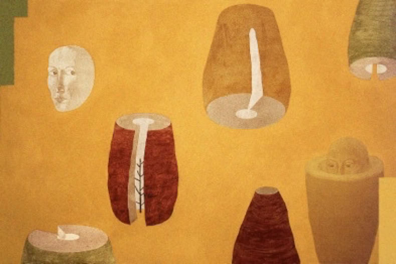 Arènes, arcades, labyrinthes, complètent - dans d'autres cadres de ces polyptyques, dans une figuration qui s'affiche comme une "signétique"- cette recherche de « la face cachée du visage » comme on a rêvé, un temps, de découvrir la face cachée de la lune. Les couleurs sont de terre et de minéralité éternelles : noir graphite, ocre, terre de Sienne, vert et bleu antiques. Couleurs qui vivent sur les vibrations et le frémissement de larges espaces grisés. Ces fonds délicatement estompés mettent aussi en valeur la matière tactile du papier, sobre et sensuelle.