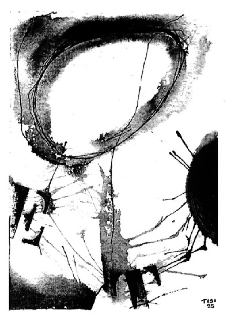 Elio Tisi, partant d’une forme ovoïde emblématique, un œuf primordial, une figure à la Modigliani, a choisi une voie encore plus étrange : le visage «vu de l’intérieur». Un autoportrait sans miroir au cours duquel le «volto» (visage, en italien) devient «impronta» (empreinte).»